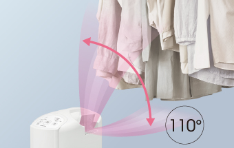 風向きを上方向から水平方向まで自由に調節できるので、特定部分の衣類乾燥やスポット除湿など、いろいろな使い方ができます。