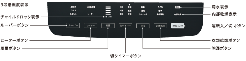 - ※5 CD-WH18タイプにおいて。当社調べ/試験条件/●部屋の広さ8畳●室温10℃湿度70%●衣類5kg相当●運転モード「衣類乾燥」運転60㎐地区。衣類乾燥時間比較:〈ヒーターON〉340分、〈ヒーターOFF〉560分の乾燥までの時間比較が約40%短縮。なお実使用時の衣類乾燥時間は使用環境・使用状況により異なります。