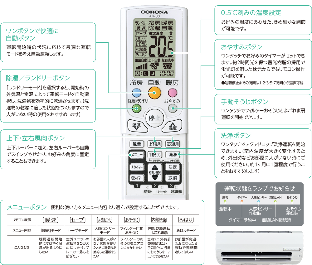 - ●室内ユニットの設置状況やご使用環境により、室温を正しく検知すること ができず、運転しないことがありますので補助機能としてご使用ください。