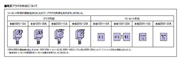 ・100V-15Aは一般的な平行型 ・100V-20AはIL型