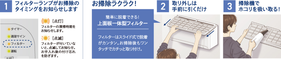 お手入れカンタン「上面板一体型フィルター」