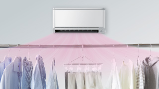 - ※1 室温20℃湿度60%のランドリールームで2kgの洗濯物を干した場合の値。運転モード「衣類乾燥:速乾(風量5)」(広さ:4畳、天井高:2.4m、物干し竿:1本、換気:あり) 実使用時の衣類乾燥時間は使用環境、使用条件により異なります。