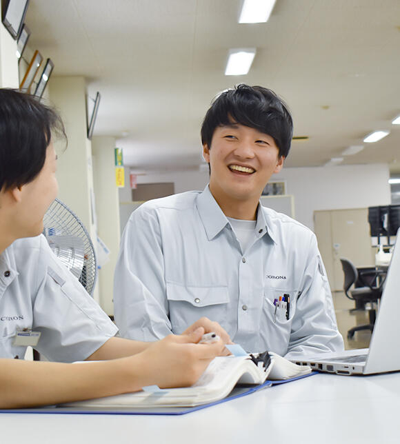 学生時代から製造業に関心を抱き、コロナの暖房・空調機器が多くのご家庭に快適と安心を届ける姿勢に深く共感しました。技術力で人々の暮らしを支え、社会に貢献することに強いやりがいを感じると同時に、「明朗・愛和・喜働」を重んじる社風のもと、先輩方の温かい指導を受けながら成長できる環境に大きな魅力を感じ、コロナへの入社を決めました。