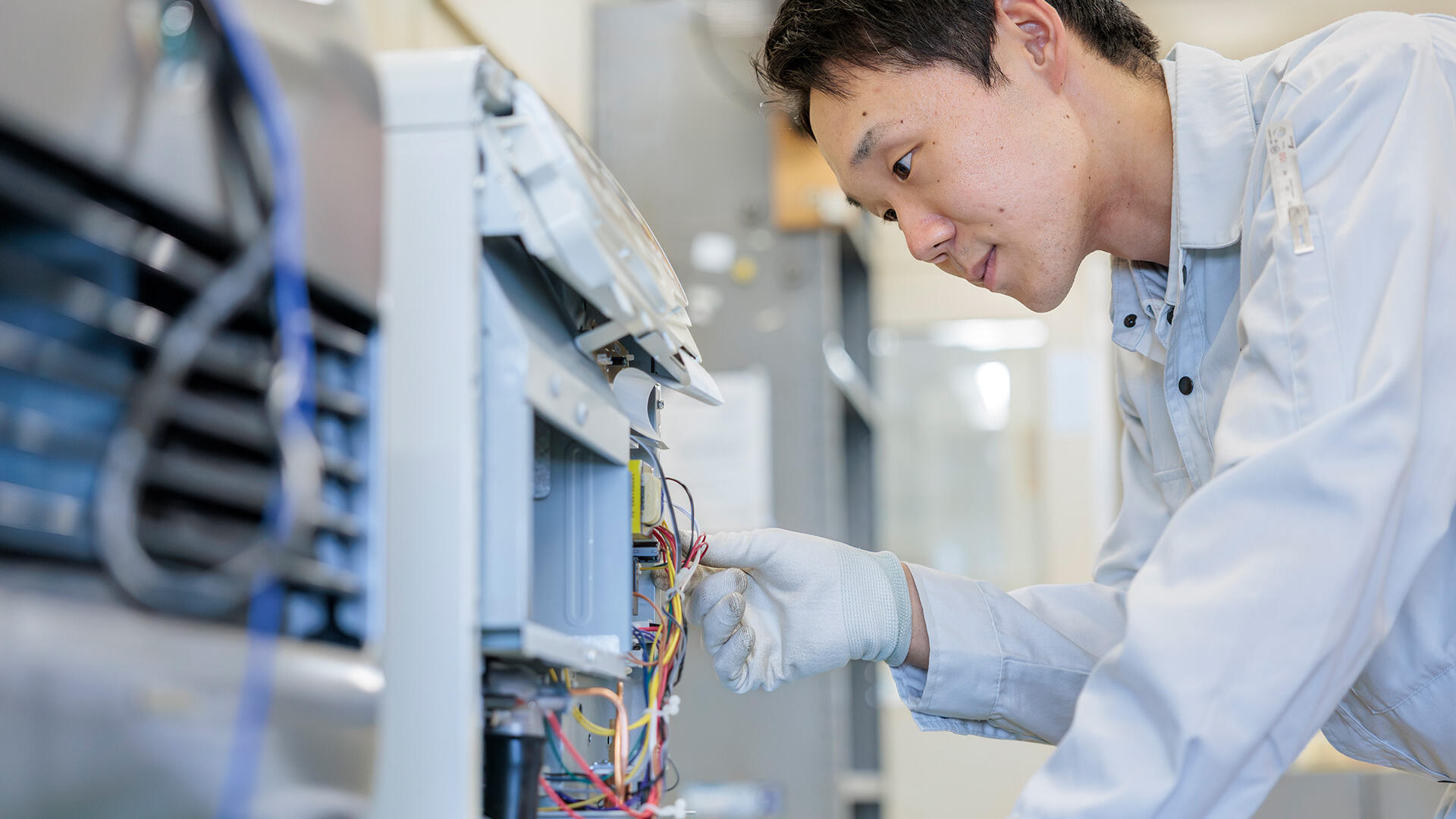 石油ファンヒーターの開発業務に携わっています。主に、製品が仕様通りの性能を満たしているかの試験や、性能を向上させるための方法をチームで議論し、実際に試験を行っています。新しい機能の追加や性能向上のために苦労することも多々ありますが、開発に携わった製品が実際にお店に並んでいるところを見たときは、大変感慨深かったです。