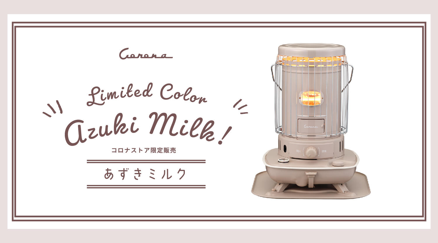 コロナストア限定対流型石油ストーブ「あずきミルク」。ほっこりかわいらしいカラーとこだわりのデザインで心地よい時間を運びます。