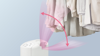 風向きを上方向から水平方向まで自由に調節できるので、特定部分の衣類乾燥やスポット除湿など、いろいろな使い方ができます。