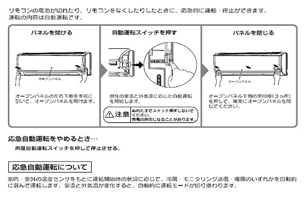 (自動運転スイッチを3秒以上押し続けると、内部乾燥運転を開始する機種もありますのでご注意願います)