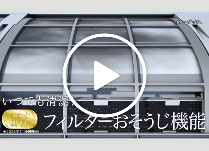 - ※1 累計25時間運転の停止後および24時間連続運転すると、自動でフィルターをおそうじします。また、リモコン操作から任意のタイミングでのフィルターおそうじも可能です。