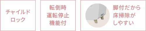 霧や蒸気が吹き出さないので、赤ちゃんや小さいお子様が触ってもやけどの心配が少ない安心設計です。