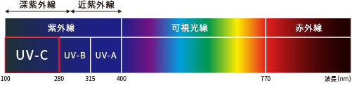 紫外線の中でも波長が短く、菌類の抑制に効果的と一般的にいわれています。