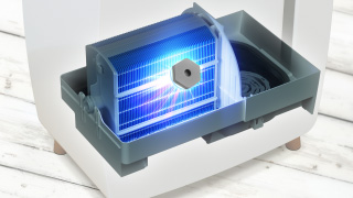 - ※2 試験機関:一般社団法人県央研究所/試験方法:菌液を接種した試験片に対してUV-Cを照射。6時間後の生菌数を測定。試験対象:1種類の細菌。試験結果:6時間後に99%以上抑制。試験番号:35021510◦除菌効果は加湿フィルター単体の結果であり、実使用空間の実証結果ではありません。◦加湿フィルターのUV-C(深紫外線)が照射されていない部分の菌は抑制できません。◦すべての菌に対応するわけではありません。