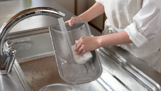 ステンレス素材でぬめりがつきにくく、角がないからゴシゴシ洗えて耐久性に優れています。