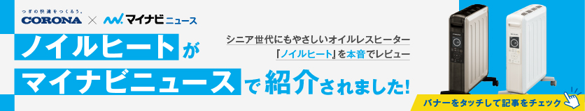 輻射によって直接空気を暖め、冬の寒いお部屋を温度ムラなく快適に暖房します。ノイルヒートはコロナの長年培った技術力を結集し、輻射と対流の「イイトコどり」をした新しい暖房機です。