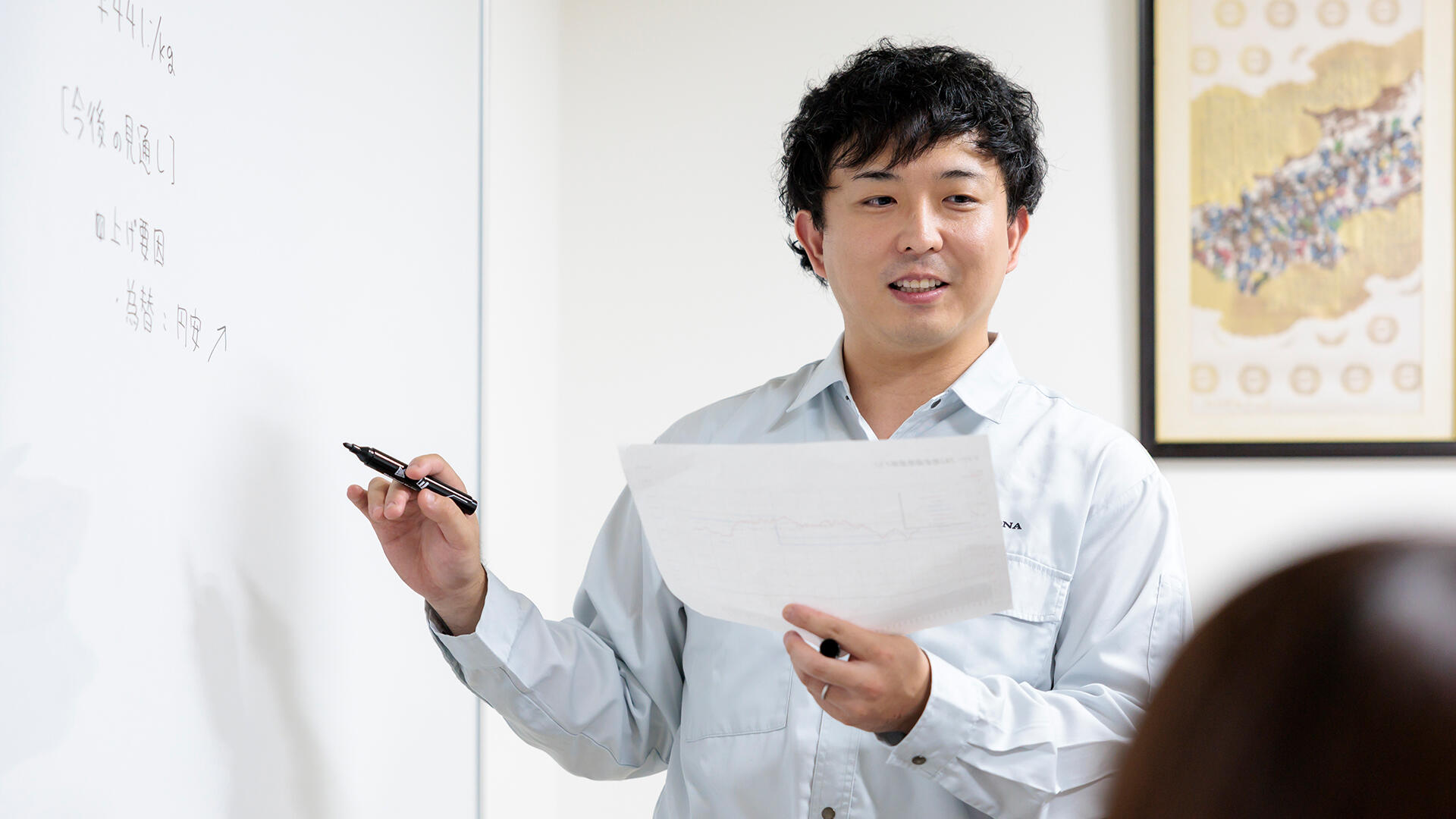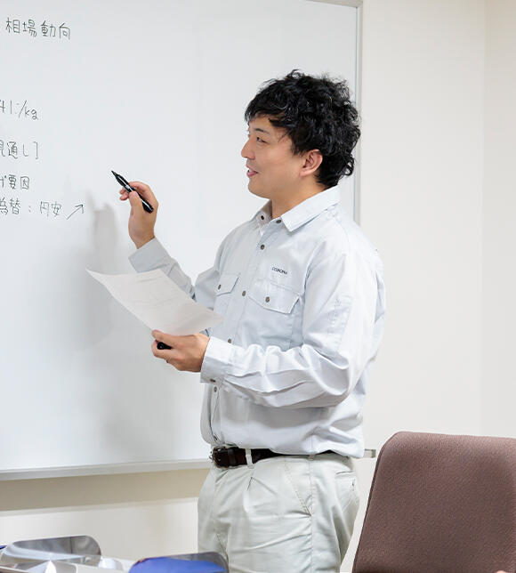 製品を構成する材料や部品の調達先や調達条件を決める購買部門で仕事をしています。技術部門からの要求仕様をもとに、品質・コスト・納期(デリバリー)の観点から最適な調達先を選定し、安定的かつ競争力のある調達を行うことが主な役割です。現在は鉄や銅・樹脂といった基礎材料の担当をしており、お取引先様との調整や交渉などを通じて、モノづくりを支える重要な業務に携わることができていると日々感じています。
