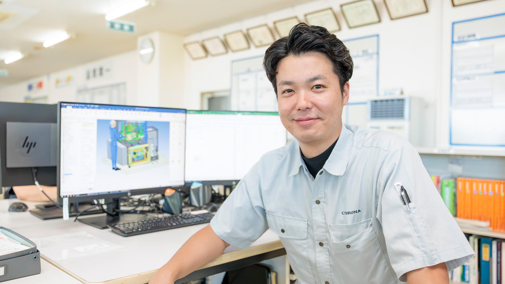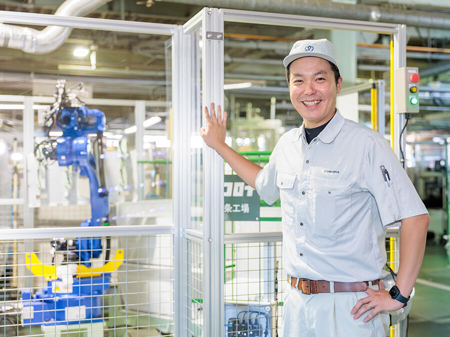 身近な人がお客様となるBtoCでモノづくりをしているメーカーで働きたい気持ちが強く、それを軸に就職活動を行いました。最終的にコロナを選んだ2つの理由としては、仕事で必要な知識は会社で教育していくという人材育成への取り組み、メーカーとしてオンリーワンの技術を追求している姿勢に心を惹かれて選びました。