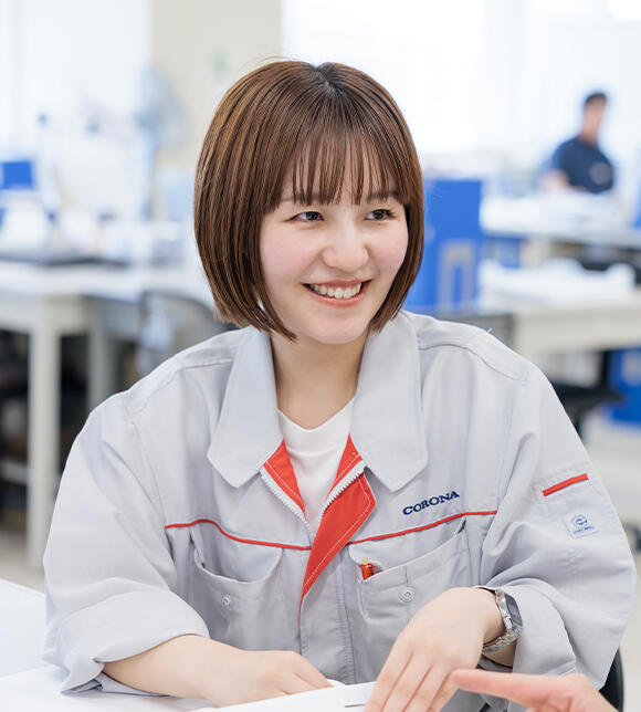 人々の生活を豊かにする仕事や安心して長く働けそうな企業を探していました。決め手はいくつかありますが、まず実家で昔からコロナのファンヒーターを使用していたことから、信頼感のあるメーカーといった印象を持っていたことです。また、平均勤続年数が長く、しっかりと休みが取れることから、仕事とプライベートを両立して長く働けると思ったことも理由のひとつです。